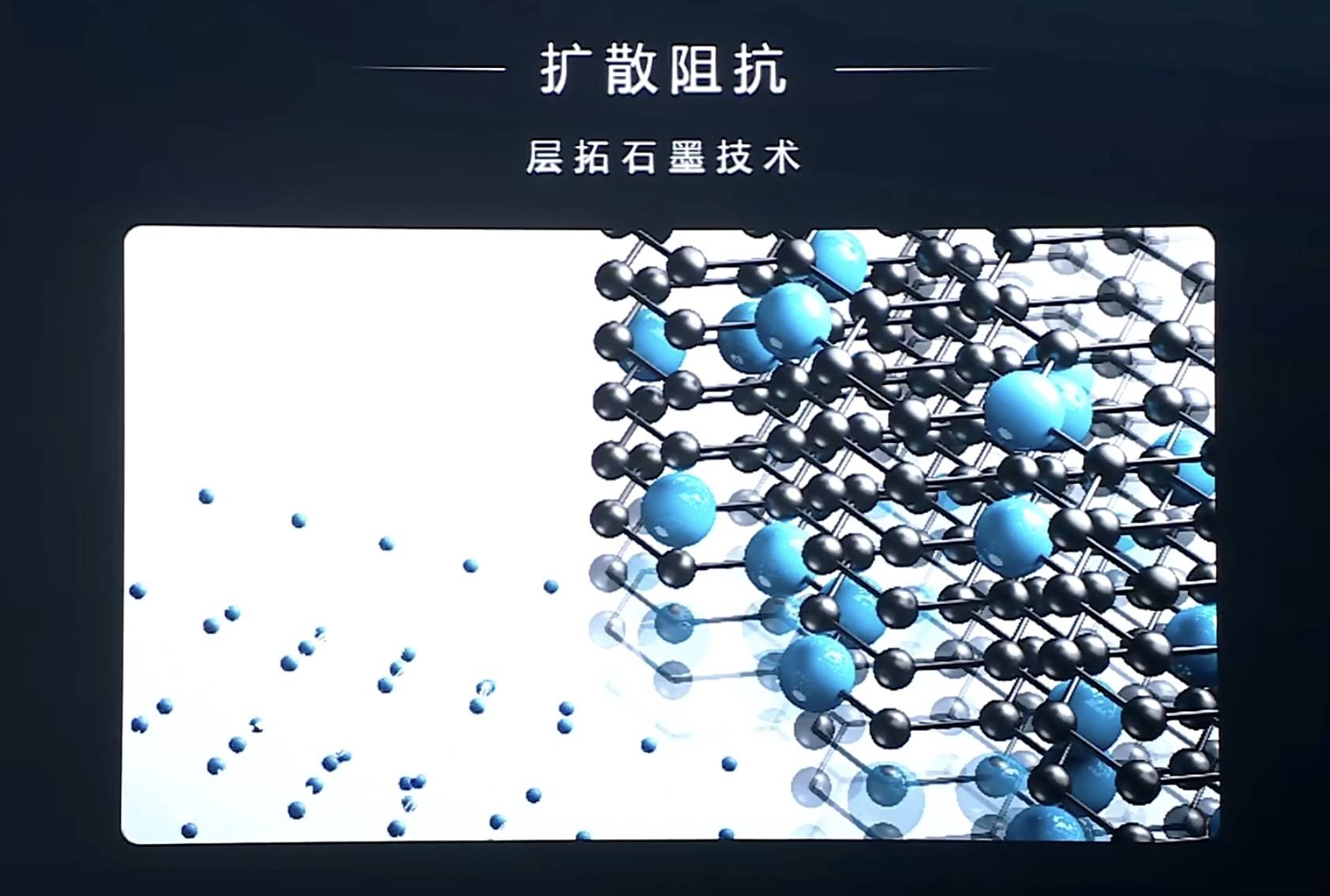 穿过薄膜的锂离子,最终还需要钻进石墨负极里,而这里的石墨层间距仅有 0.33 纳米,极其狭窄。