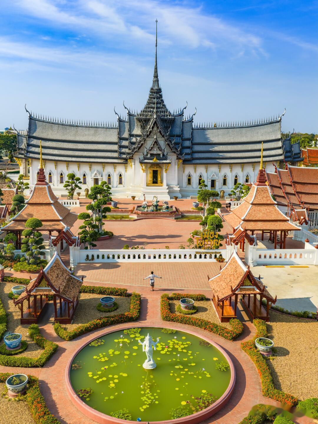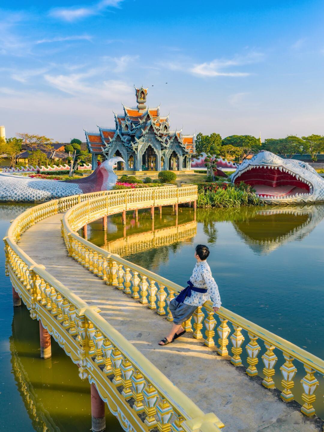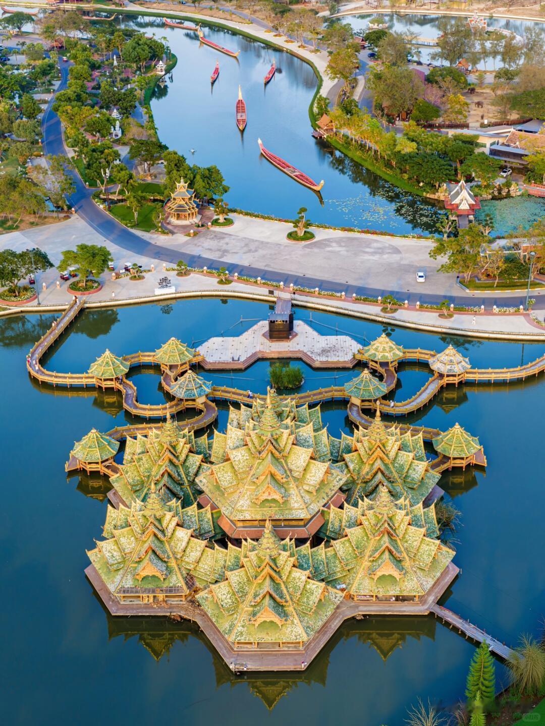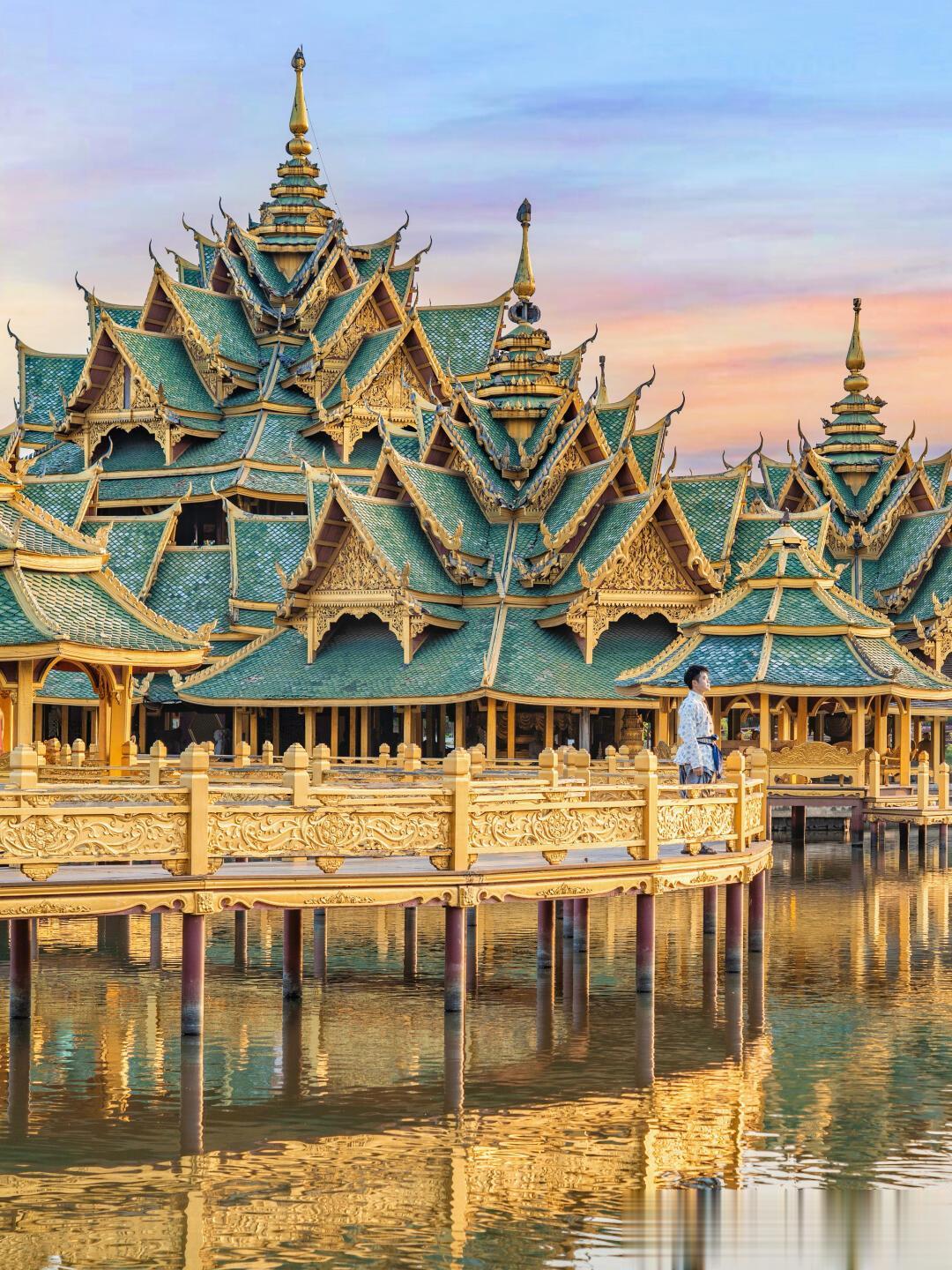 它的诞生本身就特别有情怀。早在1963年,一位叫Lek Viriyaphant的泰国土豪大叔,看着国家发展太快,担心那些老祖宗留下的文化和古迹被后人遗忘,他干了件特别酷的事:他把全泰国各个府(相当于咱们的省)从古至今最有代表性的建筑,无论是皇宫、寺庙、还是民居,要么把濒临损毁的真迹搬迁过来,要么严格按照史料1:1复刻重建,统统搬到了这720亩的土地上 。