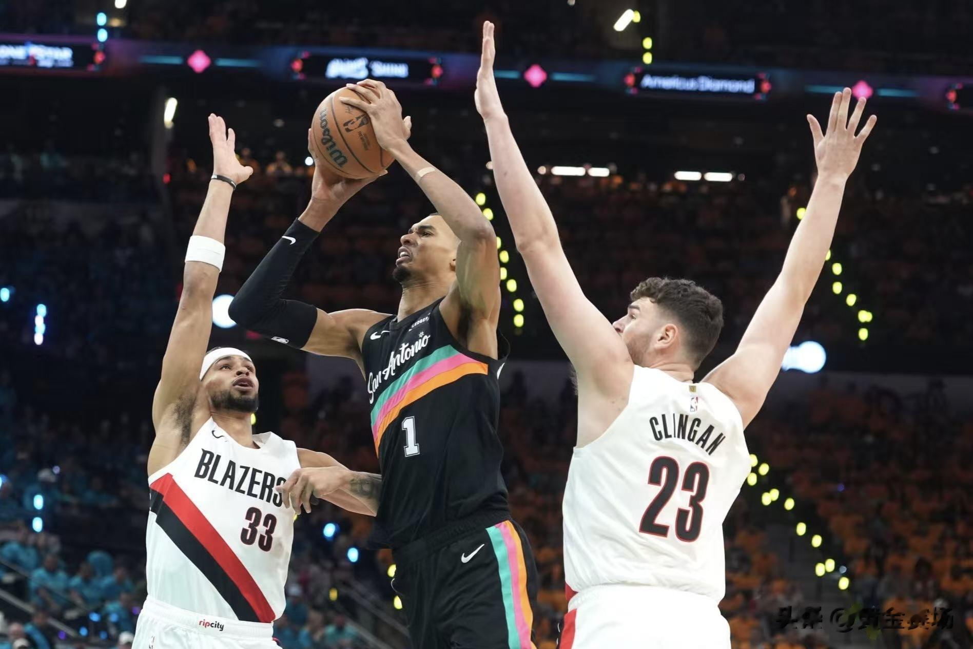 马刺的打法也很明确,就是魔球,篮下和三分线,中距离基本不投,这种打法效率高,我们整场都在被动应对,我们自己的进攻选择就不够聪明,中距离出手太多,又没有文班亚马那种无解的单打能力。