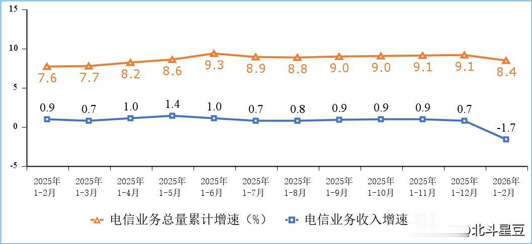 开局即“地狱模式”据工信部数据,今年前2个月,电信业务收入累计完成2904亿元,同比下降1.7%,由正增长转为负增长。