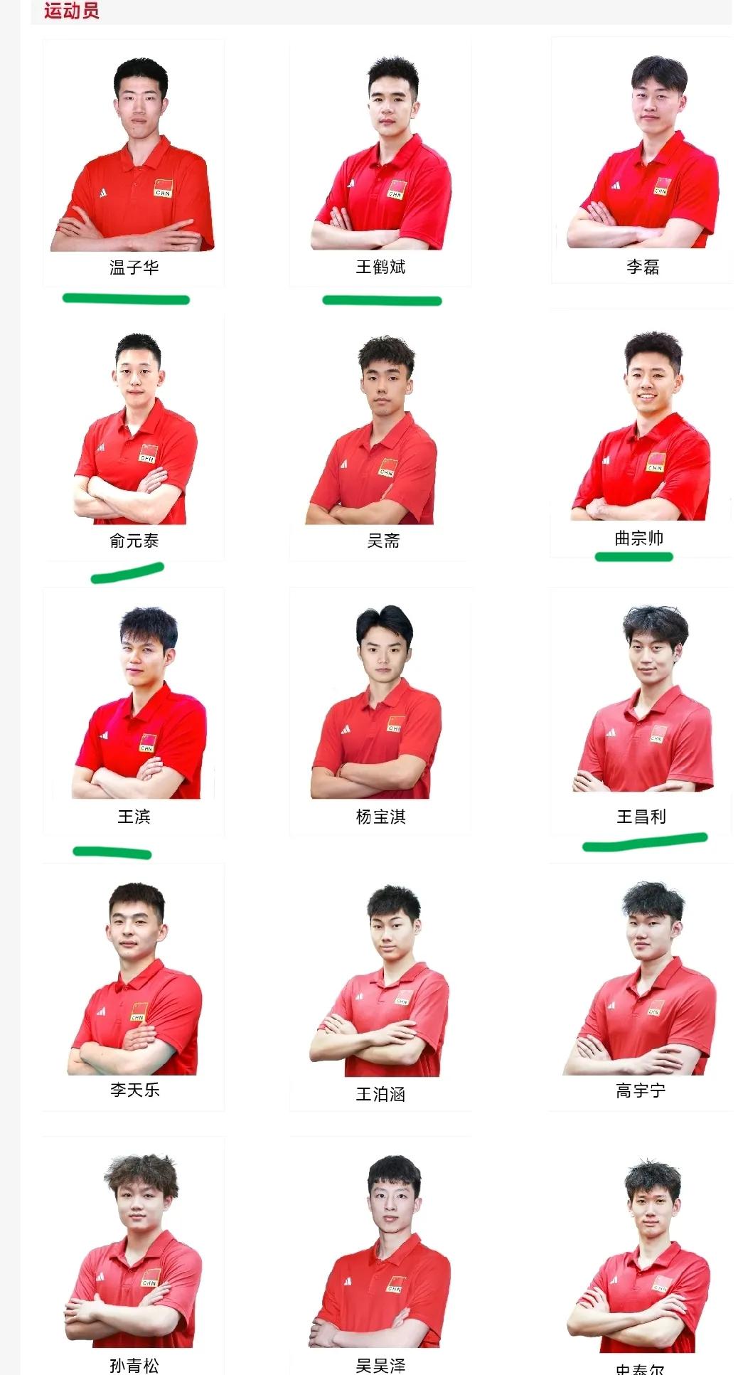 这是接应温子华,副攻王昌利,自由人曲宗帅,主攻王滨,二传王鹤斌等15名队员的证件照。