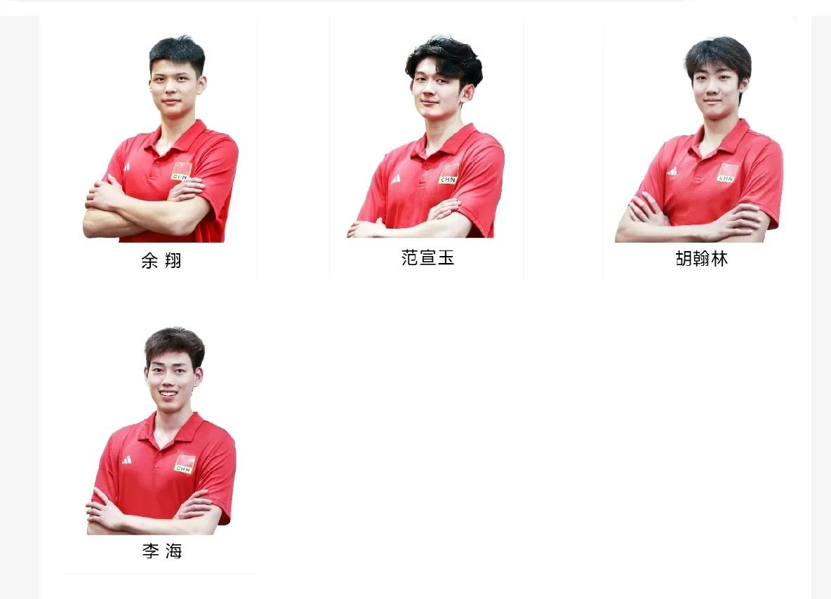 这是另外4名年轻队员的证件照。新一届中国男排一共是19名队员。