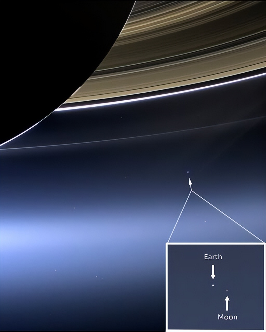 2013年,卡西尼号土星探测器在土星的背后,拍摄了一张地球的照片。拍摄之时,卡西尼号距离我们大约14.45亿公里。这里的地球看起来似乎依然明亮,但实际上图像得到了后期增强,否则呈现在画面中的地球不会如此清晰。