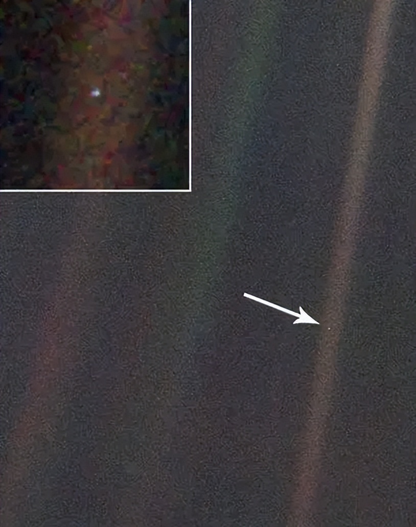 说起最令人震撼的地球照片,拍摄于1990年。彼时,美国宇航局的旅行者1号探测器即将飞出太阳系内层,进入柯伊伯带距离地球达64亿公里。在著名天文学家、科普作家卡尔·萨根的建议下,美国宇航局操纵旅行者一号回头遥望家园,拍摄了迄今为止最遥远的地球照片——Pale Blue Dot(暗淡蓝点)。