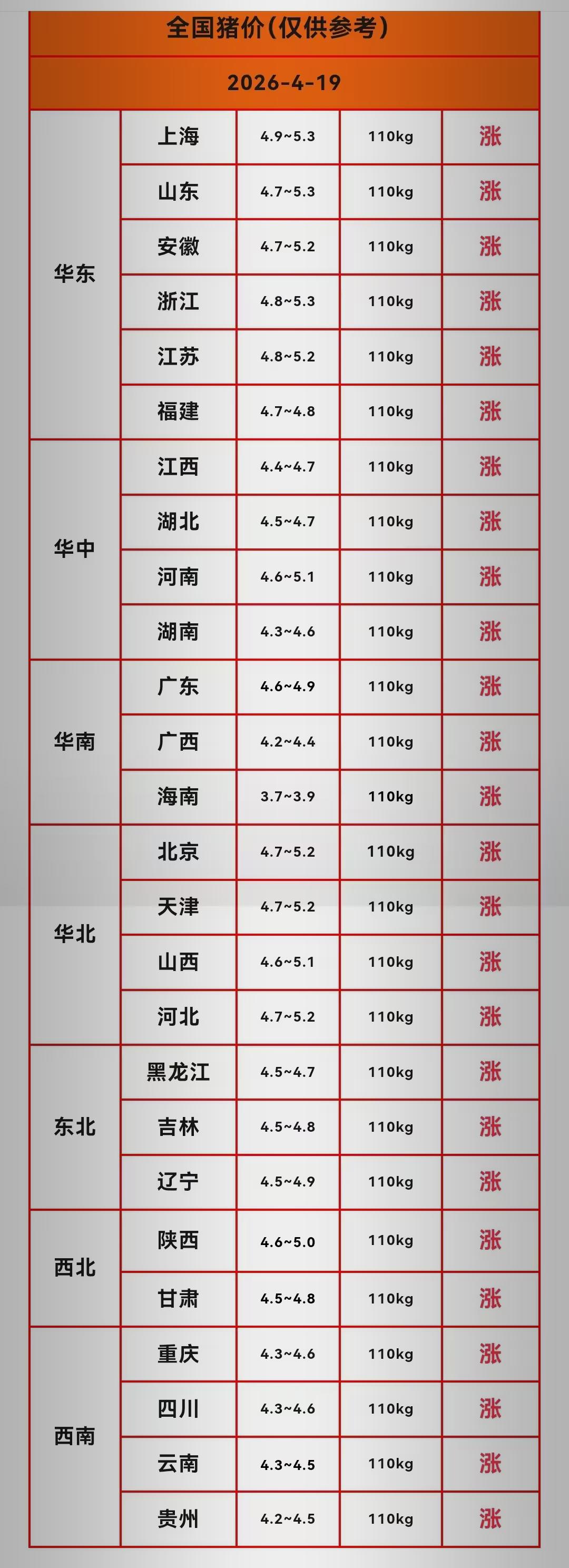 华南成为领涨先锋:广东最高冲到5.4元/斤,广西、福建、海南纷纷突破4.9元/斤。就连长期垫底的东北,也从3.8-4.0元/斤的“冰窖”爬了上来;河北、河南等传统低价区,终于告别了4元以下的黑暗时刻。全国区域价差从之前的1.6元/斤,迅速收窄到1元以内——这意味着市场正在趋于均衡,不再“旱的旱死,涝的涝死”。