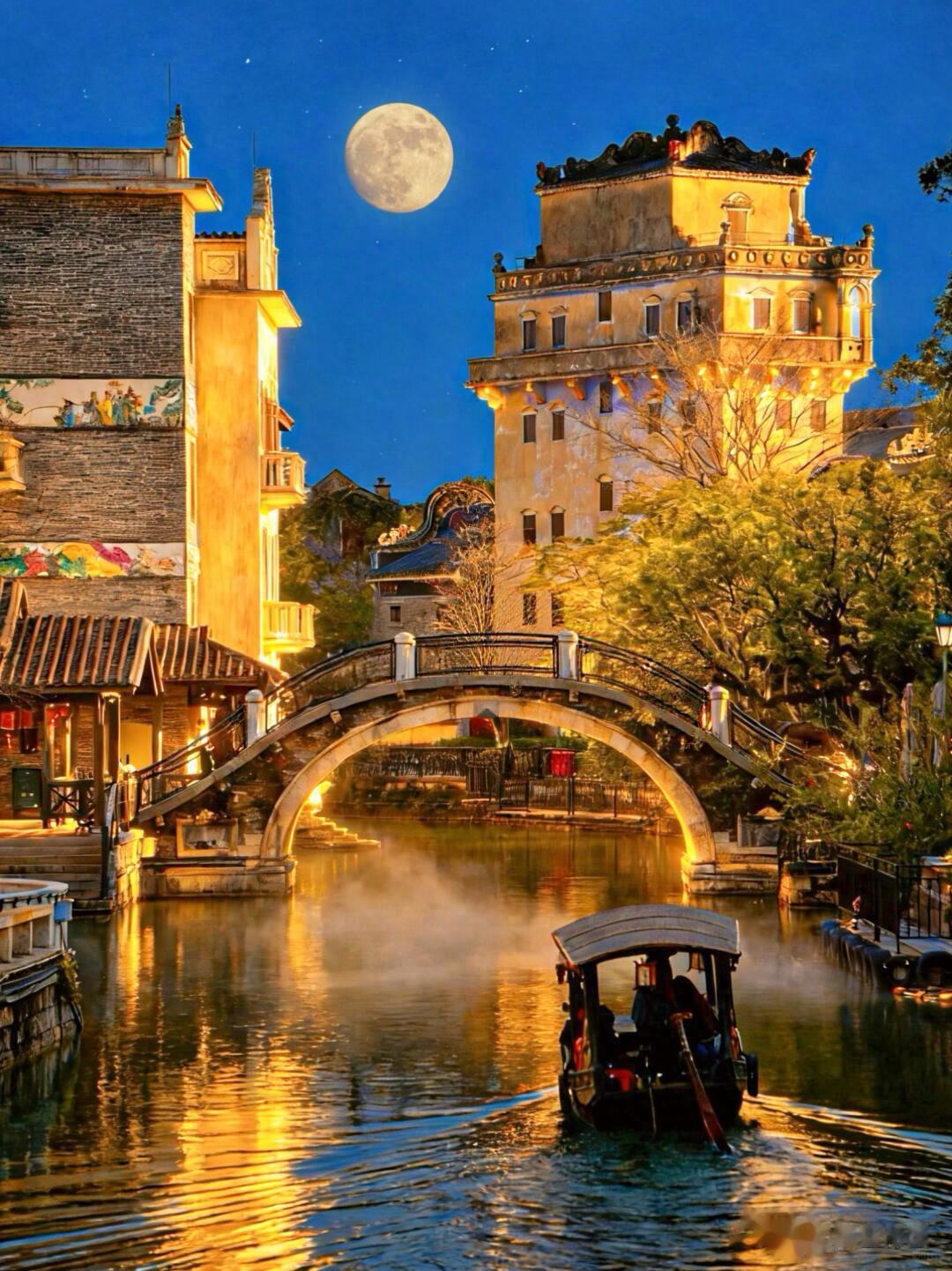 摇橹船则提供了另一种视角。推荐在傍晚时分乘坐,从北门到南门方向,在潭江上欣赏日落景色,看着两岸骑楼的倒影在水中摇曳,别有一番风味。