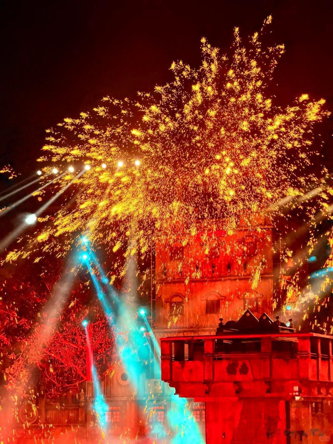 最让我震撼的是火秀表演。这场持续30分钟的演出融合了非遗打铁花和火壶表演,1600℃的铁水被泼向夜空,形成漫天金色花雨,与古老的骑楼建筑形成强烈对比,视觉效果极为震撼。