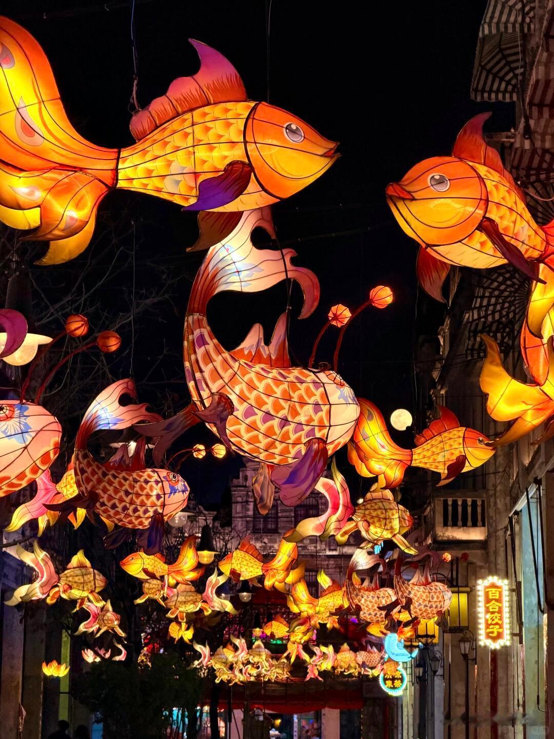 当夜幕降临,鱼灯街的灯光一盏盏亮起,整条长街光影摇曳,如锦鲤在夜色中游弋。游客们手持鱼灯,在石板路上漫步,仿佛穿越回百年前的侨乡夜晚。