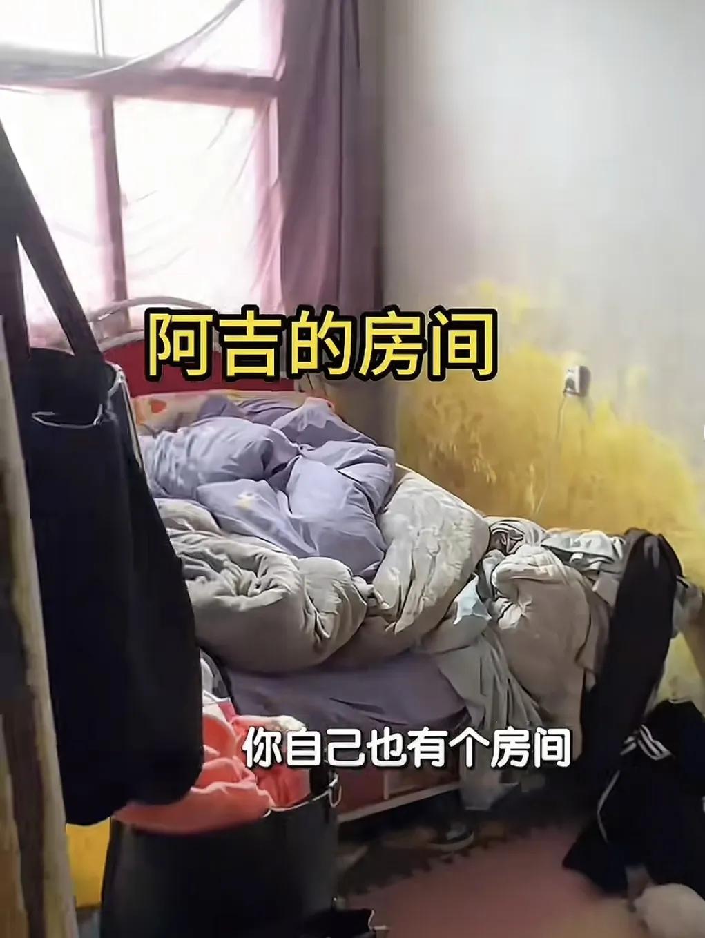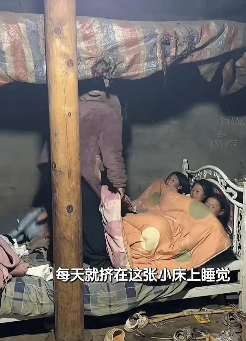 之前大家看到破烂不堪的房子是摆拍用的,床是她弟弟一个人睡的。