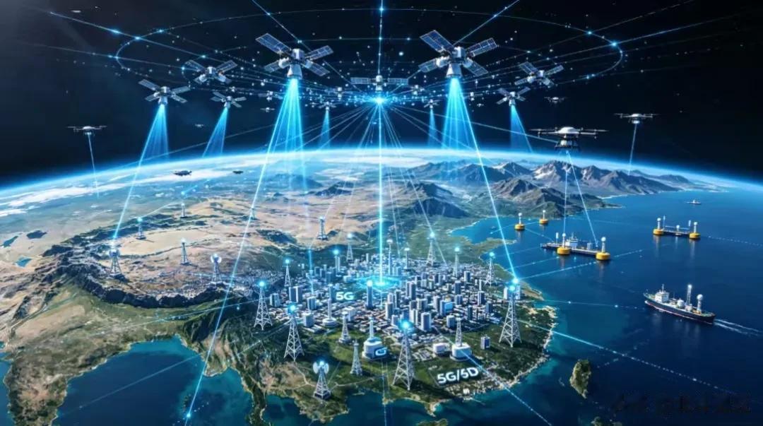 空天地一体化:低轨卫星与地面基站形成空天地一体网络,远洋、偏远地区、应急通信不再是盲区,未来的信号将覆盖每一寸土地。
