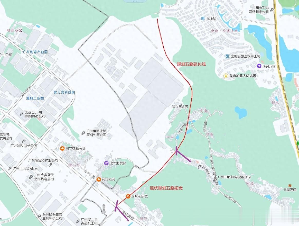 永和翟洞⽚区规划五路是黄埔区规划的南北主干路:改革大道(知明路)-东轴线-新元路-陈家林路北延线的一段。