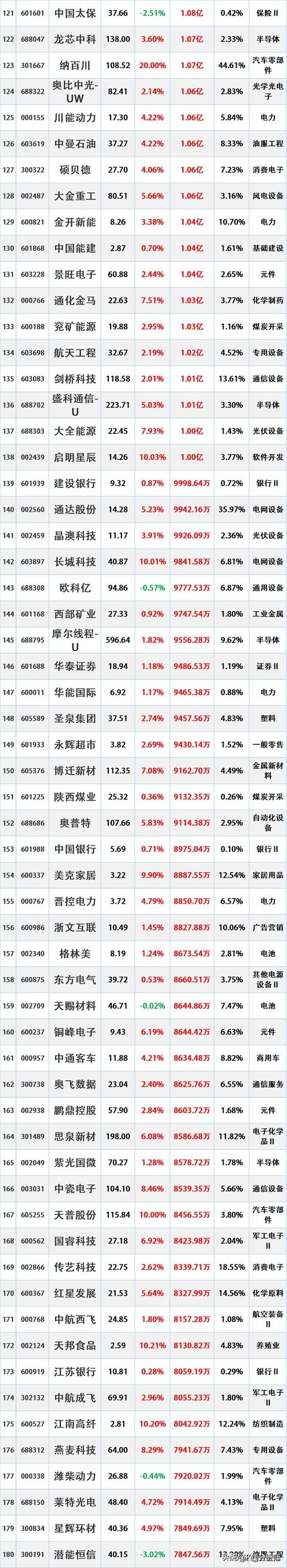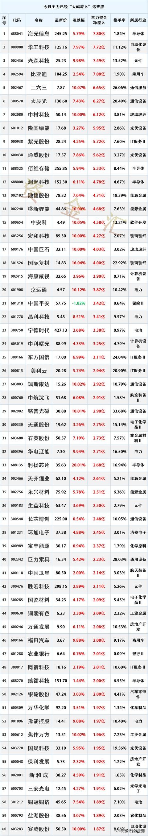 通威股份,净流入5.62亿。主要做光伏硅料和电池片,市占率稳得很,成本控制也强。在光伏行业里属于那种踏实干活的,资金一直挺认。