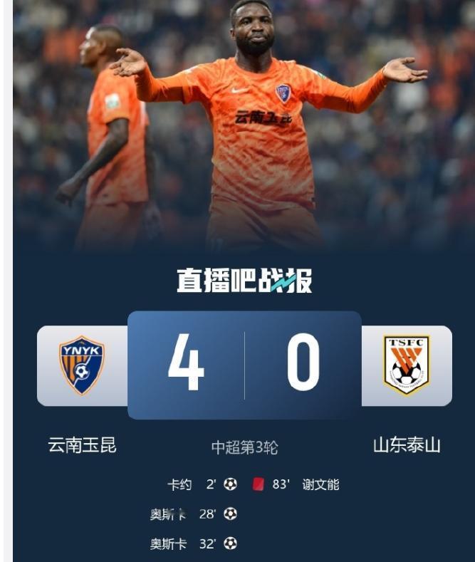 当主裁判三声长哨响起,山东泰山球员呆立在玉溪高原体育中心的草坪上,比分定格在0-4!这个刺眼的比分像一记重锤,砸碎球队前两轮连胜的骄傲,更砸碎无数山东球迷的心。从“稳如泰山”到“崩如山倒”,这支中超传统豪门究竟怎么了?