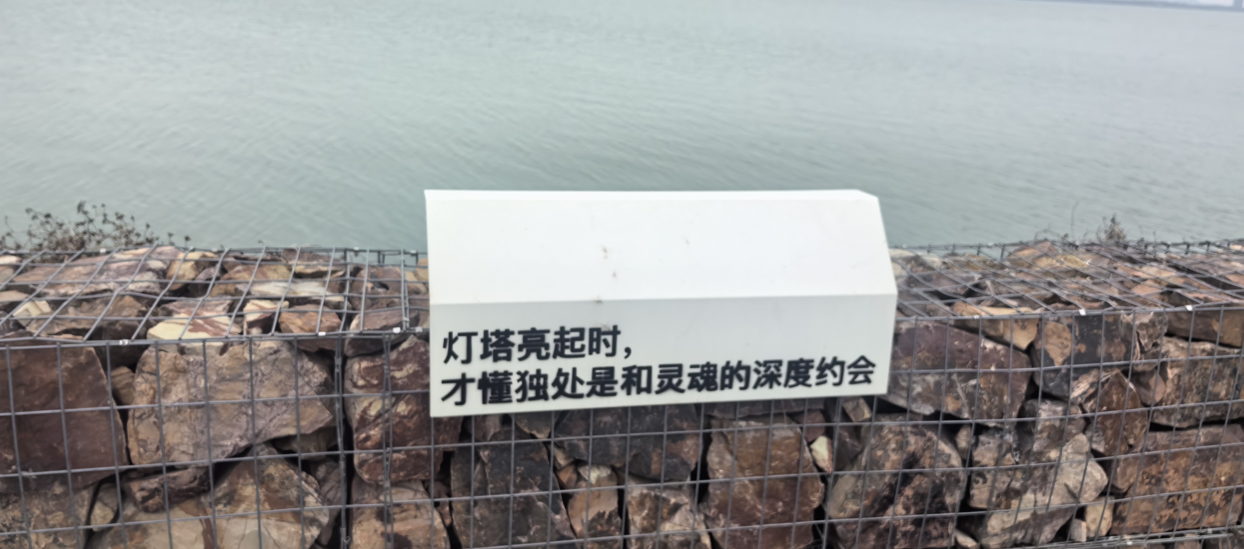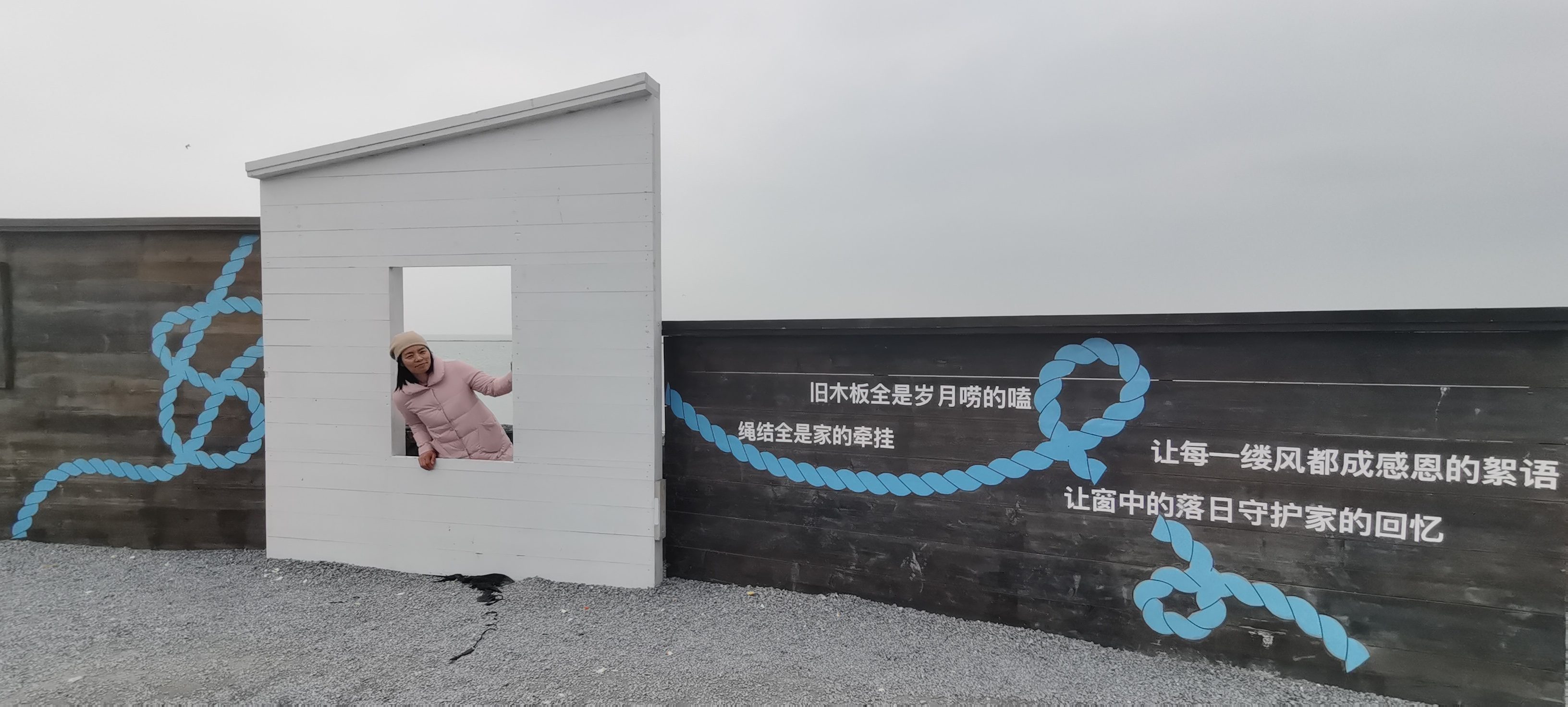 原路返回。刚才只顾着看海鸥了,没有注意到栈道两侧还有很多具有意思的标语。以及供游人拍照的地方。
