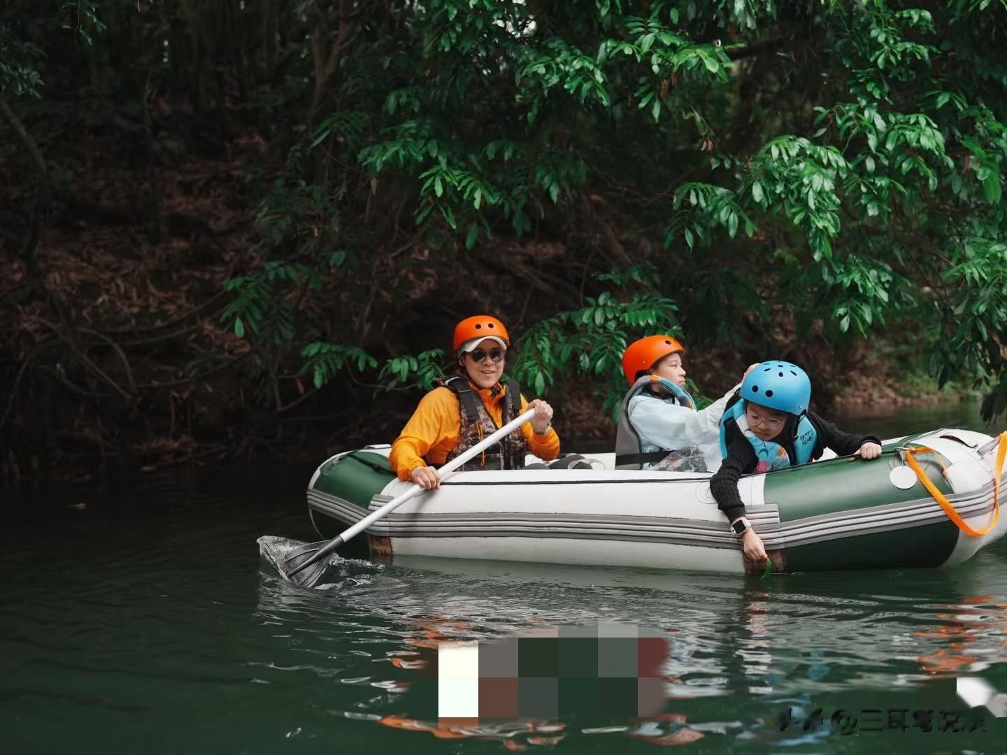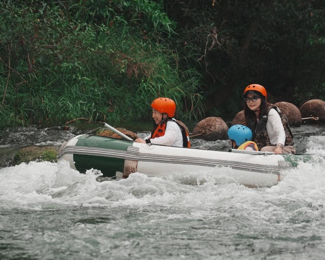 话说回来,一家人还去体验了皮筏艇,玩的特别开心,霍启刚也有提到,带三个娃出门确实是"体力活",真的很累,但看到孩子们玩得开心、学到东西,这种"累并快乐着"的感觉,格外幸福。