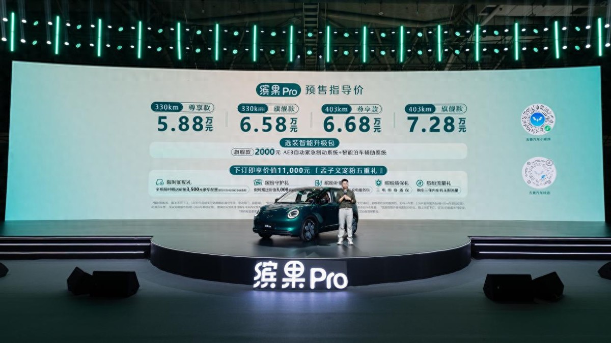4月14日晚,五菱缤果Pro正式开启预售,5.88万元起,共四款配置:330km尊享款5.88万、330km旗舰款6.58万、403km尊享款6.68万、403km旗舰款7.28万。今天咱们就来看看这台“精致缤纷座驾”到底值不值得买?