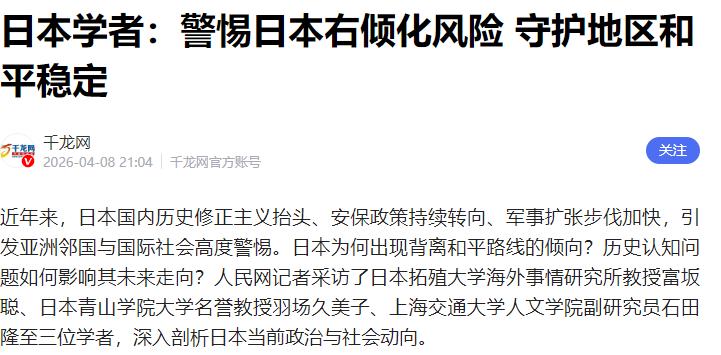这个学者不是在危言耸听,日本最近的右倾化,已经严重到藏不住的地步了,尤其是高市早苗上台之后,更是变本加厉,一步步朝着危险的方向走。