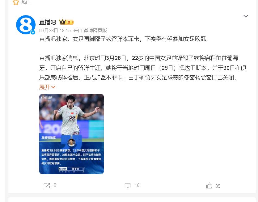 邵子钦的转会,是中国女足复兴路上的一块重要拼图。下赛季的欧冠赛场,当本菲卡的红色战袍出现在镜头前时,我们期待看到一位中国姑娘用进球让世界惊叹。这不仅是邵子钦的个人梦想,更是中国女足向世界证明自己的机会,我们不仅能赢亚洲杯,还能在欧洲最高舞台上留下足迹!你觉得邵子钦能在本菲卡站稳脚跟吗?中国女足的留洋潮能复制男足的辉煌吗?评论区聊聊你的看法!)