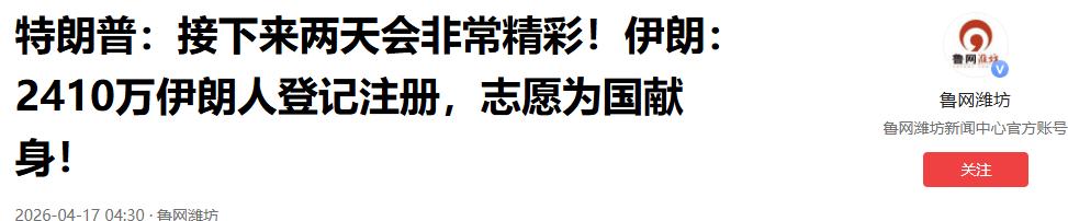 特朗普:接下来两天会非常精彩!伊朗:2410万伊朗人登记注册,志愿为国献身!——2026-04-17 04:30·鲁网潍坊