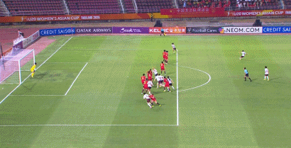 开场仅 4 分钟,日本队板村真央禁区内面对我们5个人的围堵抢点破门。24 分钟后,福岛望爱主罚任意球绕过人墙擦着立柱进球,我们的门将和人墙居然连防门柱一侧都没做到。
