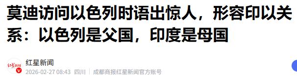 1.2026-02-27《莫迪访问以色列时语出惊人,形容印以关系:以色列是父国,印度是母国》-红星新闻