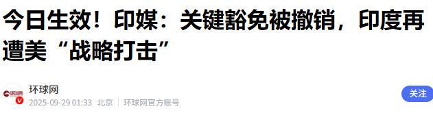 3.2025-09-29《今日生效!印媒:关键豁免被撤销,印度再遭美“战略打击”》