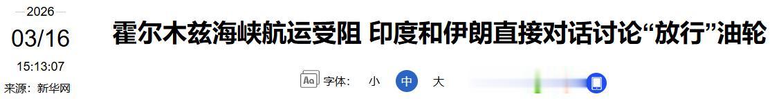 2.2026-03-16《霍尔木兹海峡航运受阻 印度和伊朗直接对话讨论“放行”油轮》-新华网