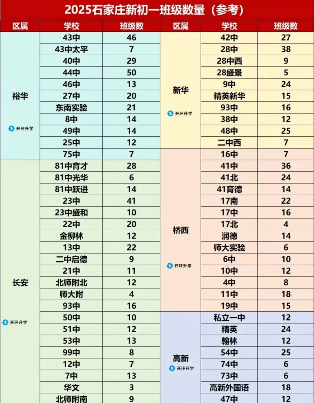 一、生源并非趋于“均衡”,只是从“集中”到“分流”阳光招生最核心的改变,是掐灭了“点招”这条捷径,但优质生源的流向也并没有实现“片内均衡”。只要家庭有条件、孩子够优秀,家长们的择校逻辑从未变过——43 中、81 中、40 中依然是首选,42 中、28 中、23 中、41 中等名校也成了“香饽饽”。这一点学校的班级规模就能印证,因为最近两三年,这些头部初中的班级数量持续扩容,也是优质生源“用脚投票”的结果。区别可能就是,以前尖子生大概率扎堆43中、81中,但现在分散到了更多传统热门初中,虽然优质生源的集中度下降,但“向名校聚集”的大趋势,并没有明显没改。