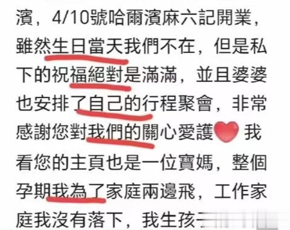 她边解释着还边向大家表达了她当媳妇儿,当老婆的不容易,怀孕期间还为了大宝二宝来回飞,而且还一直在忙工作。