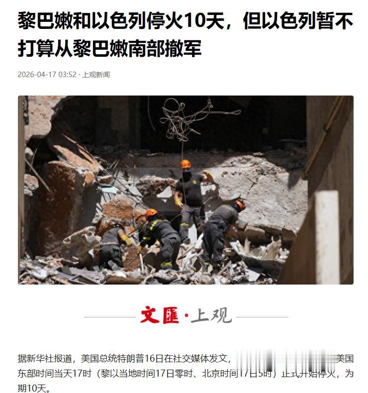 就在大家以为马上要打起来的时候,4月16日,在美国的拉扯下,以色列和黎巴嫩真主党突然同意停火10天。