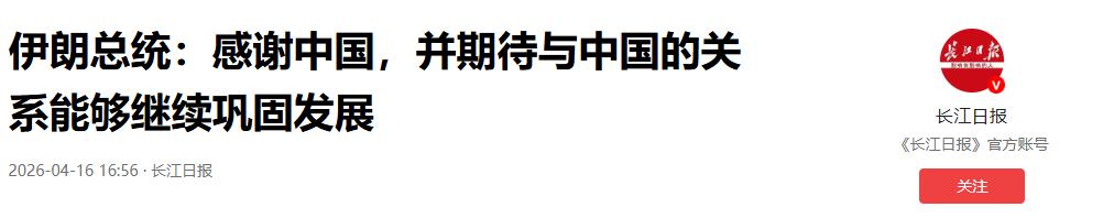 伊朗总统:感谢中国,并期待与中国的关系能够继续巩固发展——2026-04-16 16:56·长江日报