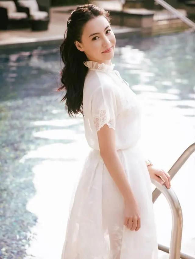 张柏芝19岁vs45岁对比张柏芝19岁和45岁的同角度照片,同款白裙同款场景,