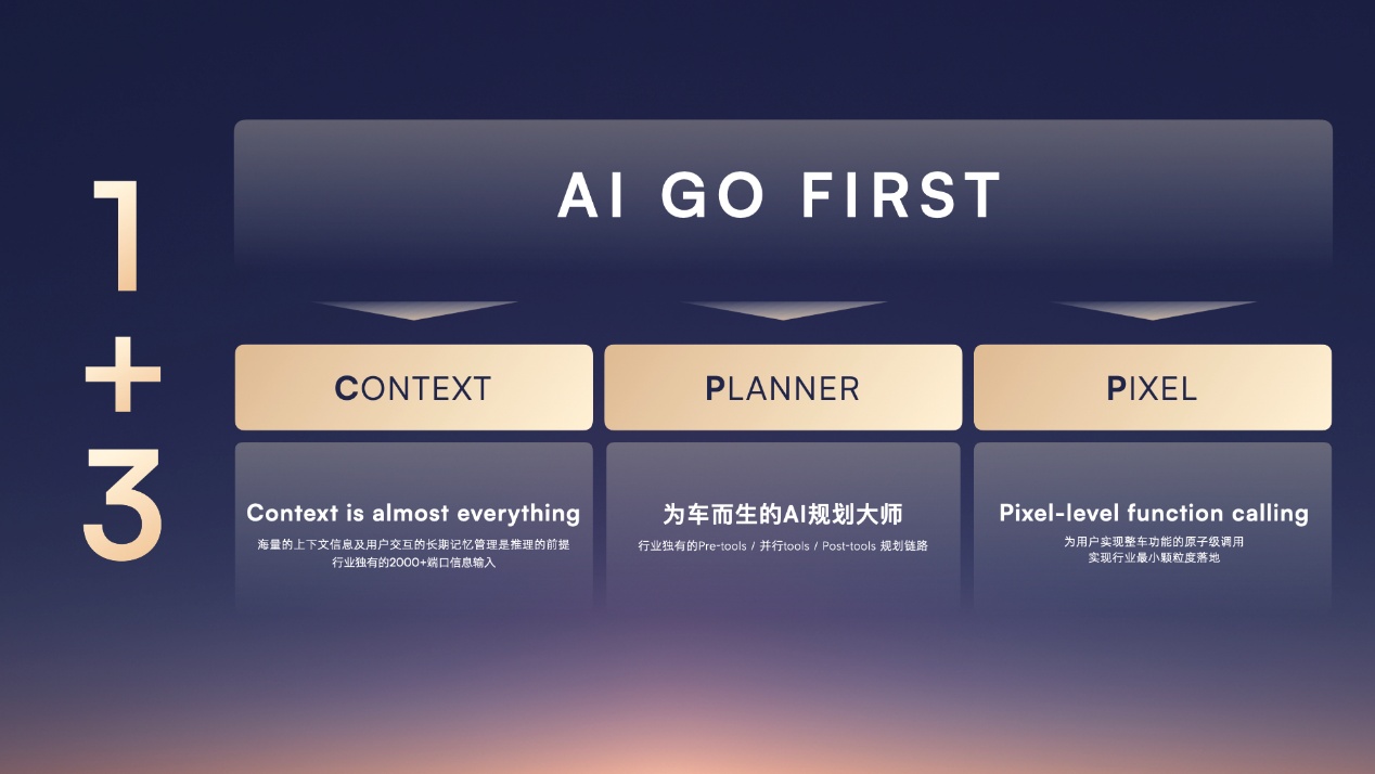 产品基于行业首创的CPP(Context, Planner, Pixel Level function calling)AI原生技术架构打造,从Context实现海量信息获取与长期记忆管理,到为车而生的 AI 规划大师Planner完成智能分析、规划与决策,最终实现Pixel原子级精准执行,形成全链路技术闭环,让 AI 原生技术真正落地于汽车场景。