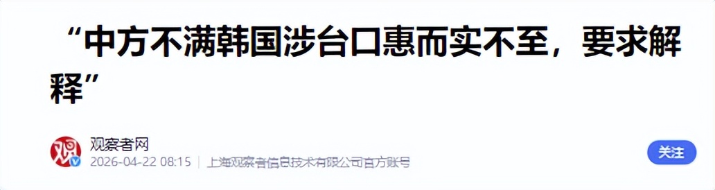 这种政策导向,使得韩国国内形成了一种动辄就想打“台湾牌”向中国施压的思维惯性。