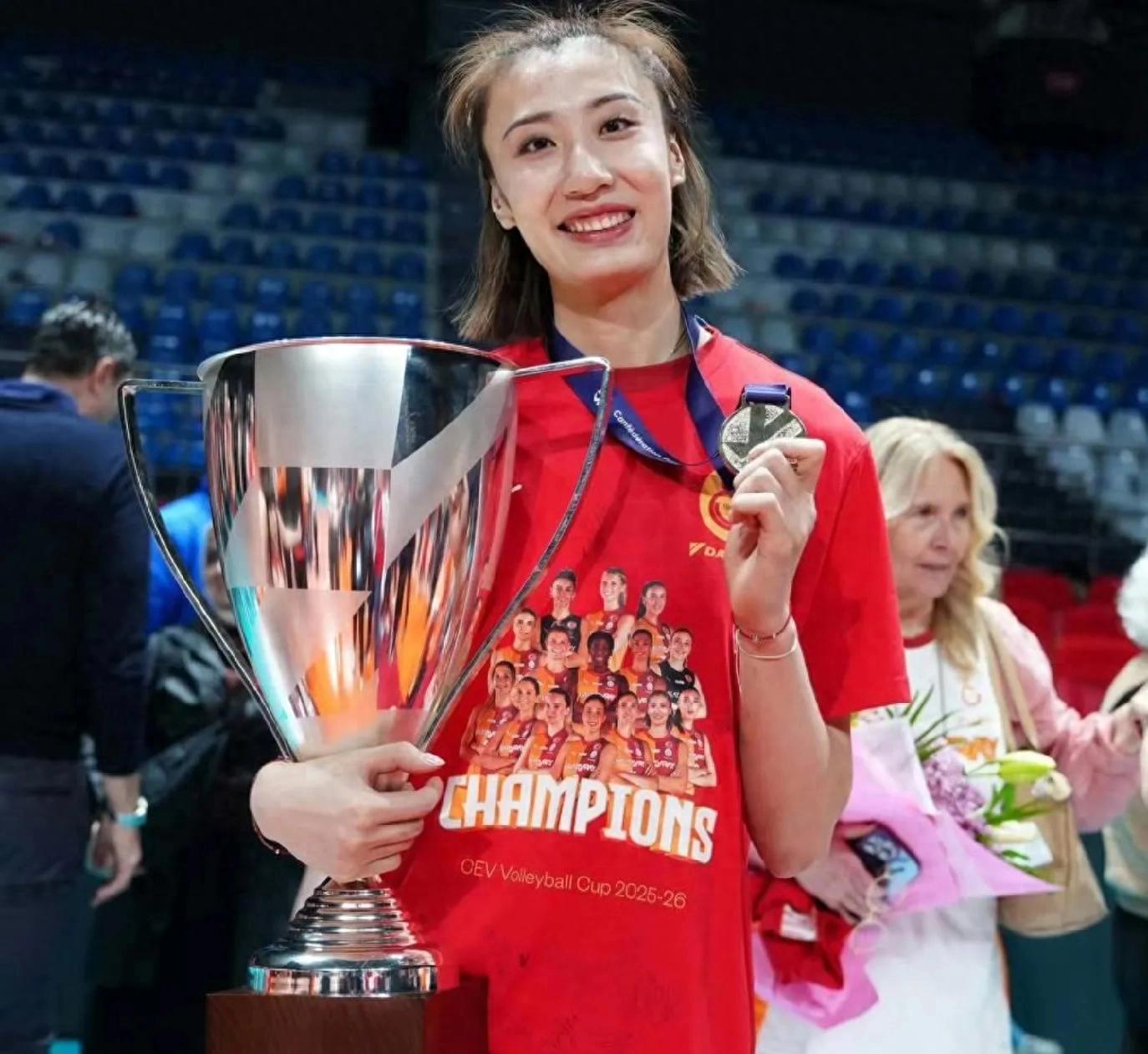 王媛媛在土耳其联赛的第一个赛季,就获得欧联杯冠军和副攻榜第一名位置两项桂冠!这说明天津女排的队员走到哪里都发光!