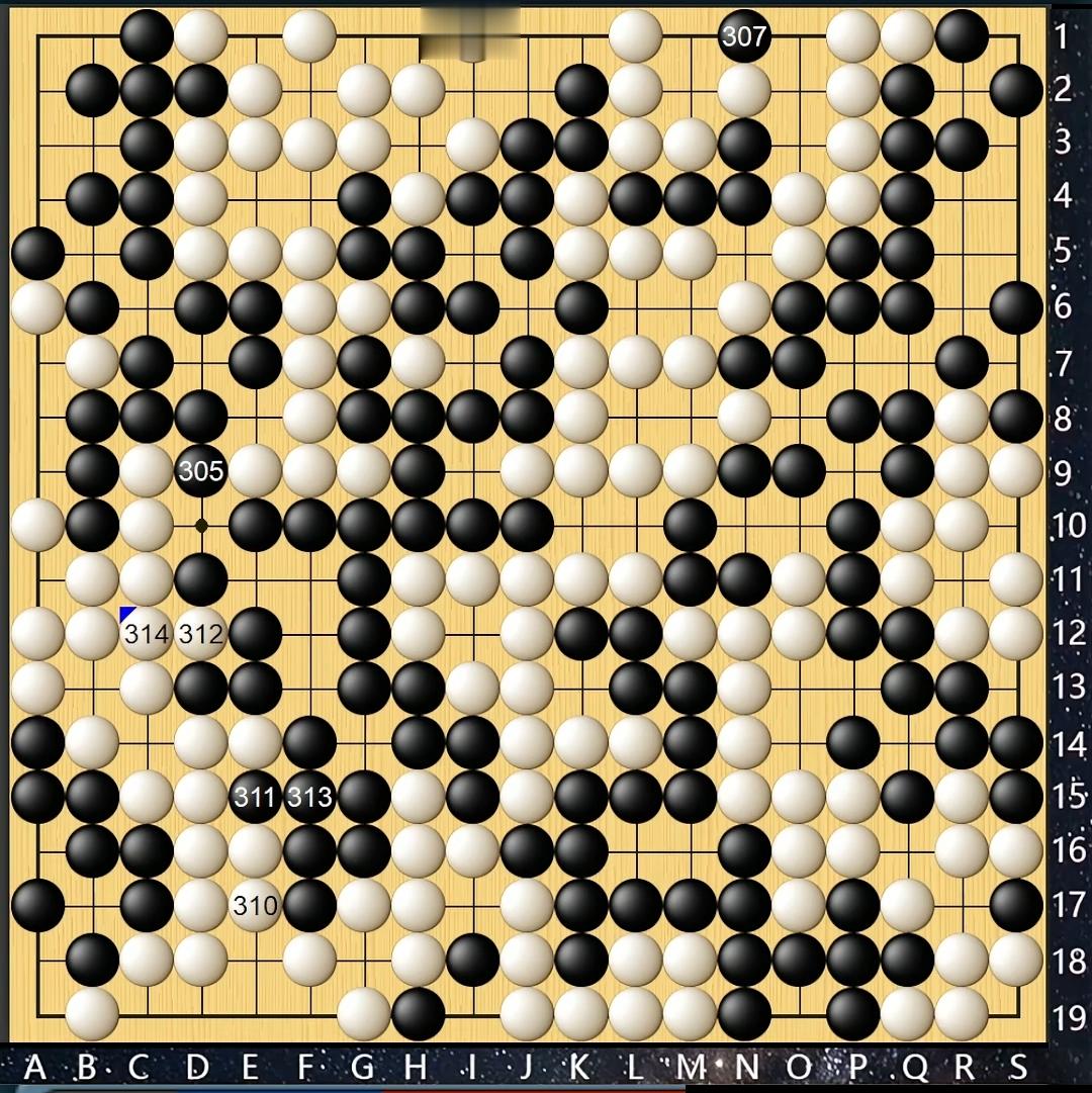 黑213左边二路飞、脱离主战场,败招,白小胜已成定局。四月奇迹,不得不承认姜还是老的辣,白棋神奇逆风翻盘。