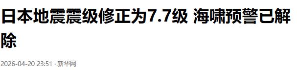 1.2026-04-20《日本地震震级修正为7.7级 海啸预警已解除》-新华网