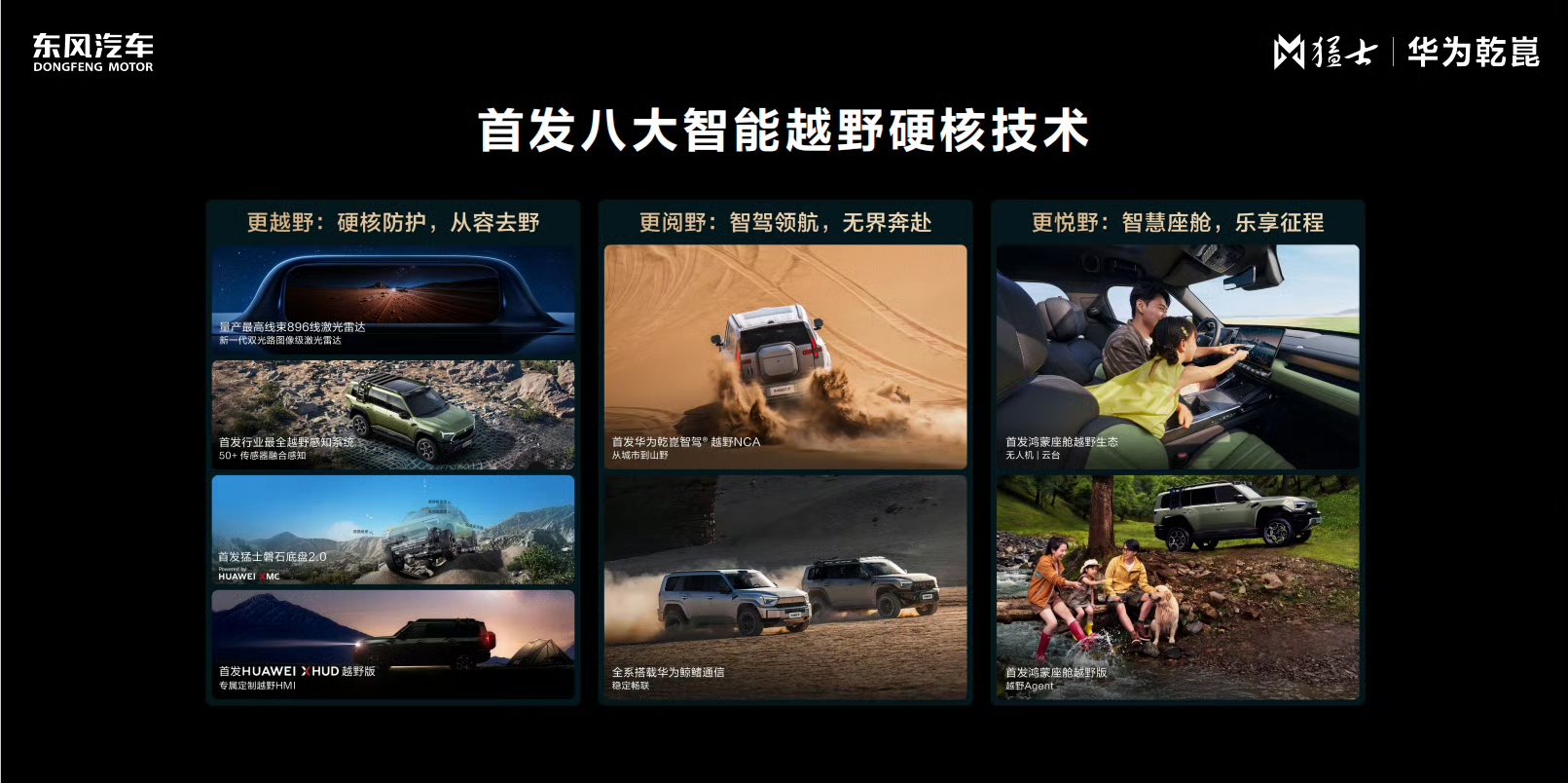 今日猛士与华为乾崑联合发布八大智能越野硬核技术,首次在车企门店悬挂华为标识,双方合作正式迈入“全维共创”新阶段。