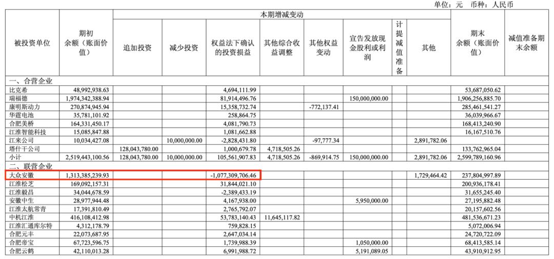 除尊界外,江淮年报中并未过多提及大众安徽这一联营企业的经营情况,而只是简单注明,2025年对大众安徽的投资损失为10.7亿元。整体来看,江淮汽车2025年长期股权投资共亏损8亿元,只是在众多合营及联营企业中,大众安徽的亏损额度最为扎眼。