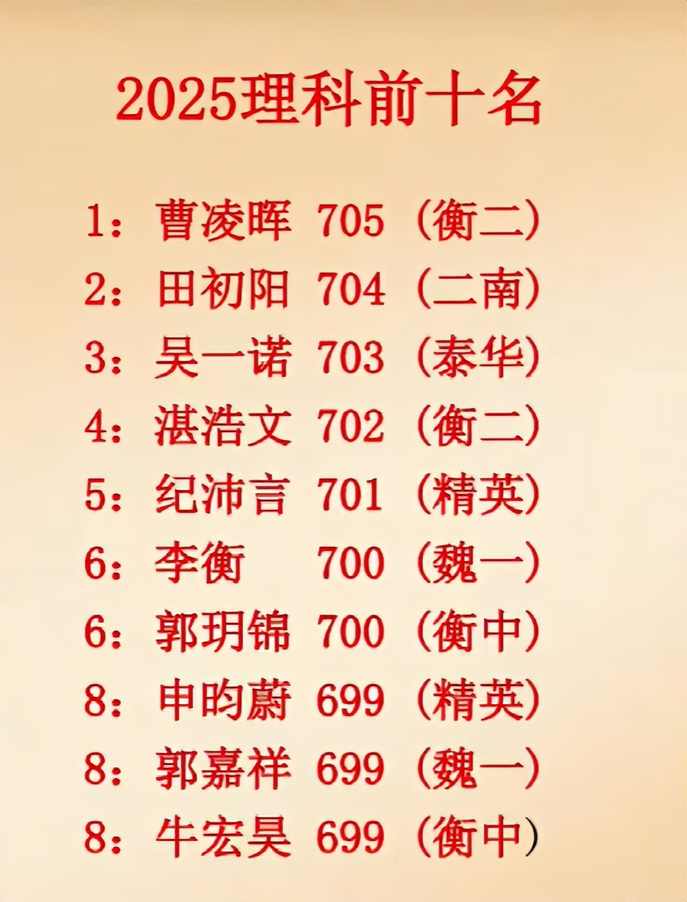 比如,前两天,石家庄某博主晒出的某头部高中2025年的高考“喜报”,堪称是“地狱级”笑话——全校考生平均分620分;650分以上高分段300人,占比超30%;700分以上的20多人;四个领航班平均分数660分;达到清北录取线人数的15人(2个艺术生)。乍看 “战绩辉煌”,但只要对照河北省教育考试院公布的2025高考一分一档表,谎言瞬间崩塌——全省物理组693分及以上共32人,而全省700分以上仅7人。其中,二南田同学的704分和精英纪同学的701分已是全市顶尖水平,请问某某学校那20多人的700分+从何而来?