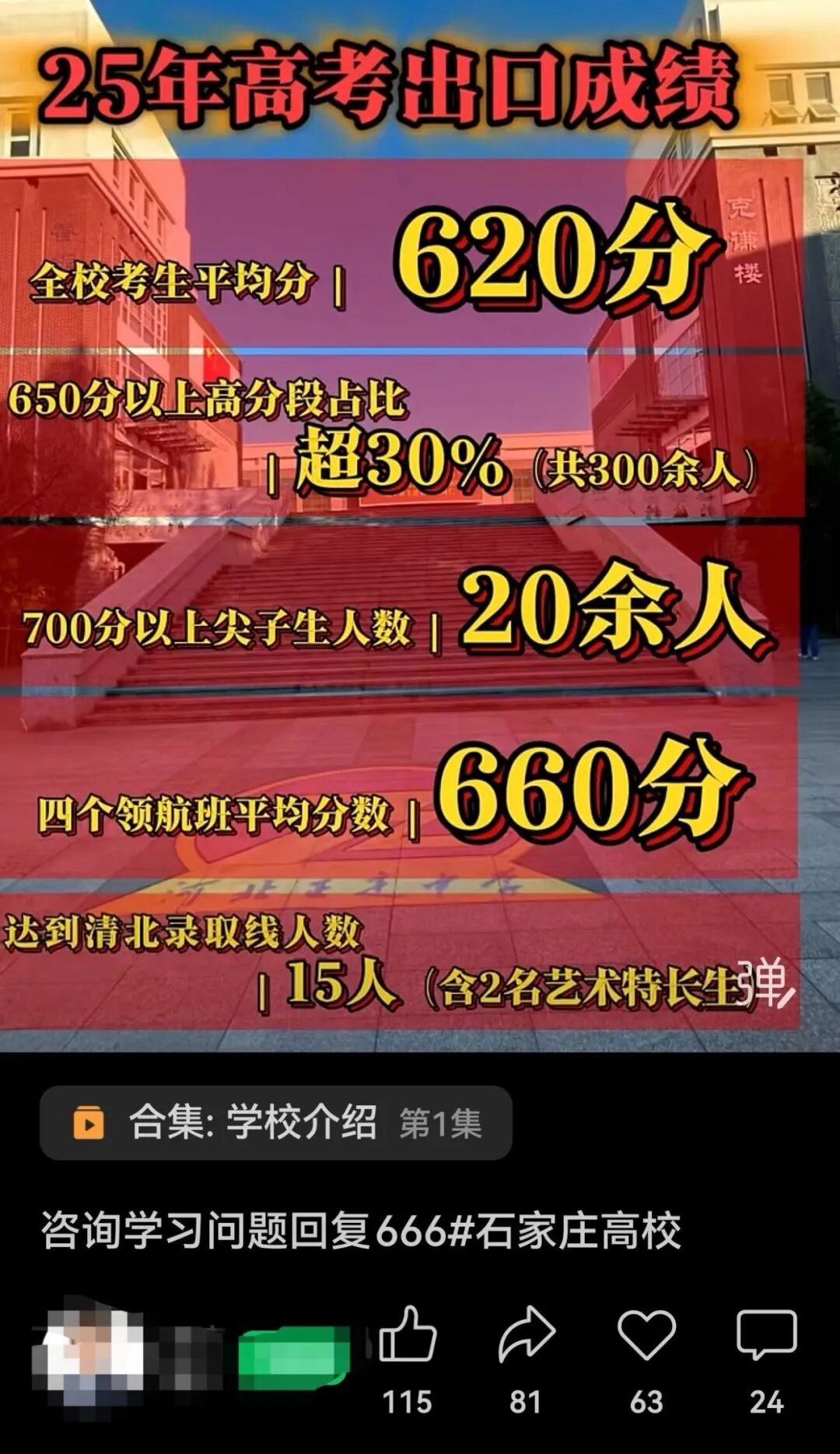 但每到中考择校季,总会有一些“歪风习气”时不时在家长圈蔓延,比如,某些石家庄头部高中的高考数据突然“开挂”,让人猝不及防。它们有的注水掺假,有的夸大其词,最离谱的是明目张胆的数据造假,这已经不是一次单纯的数据造假了,而是一场侮辱智商的“骗局”,却还引来不少网友的点赞和转发,甚至还有人信以为真,也不禁让人感叹——这背后,到底藏着多少坑?