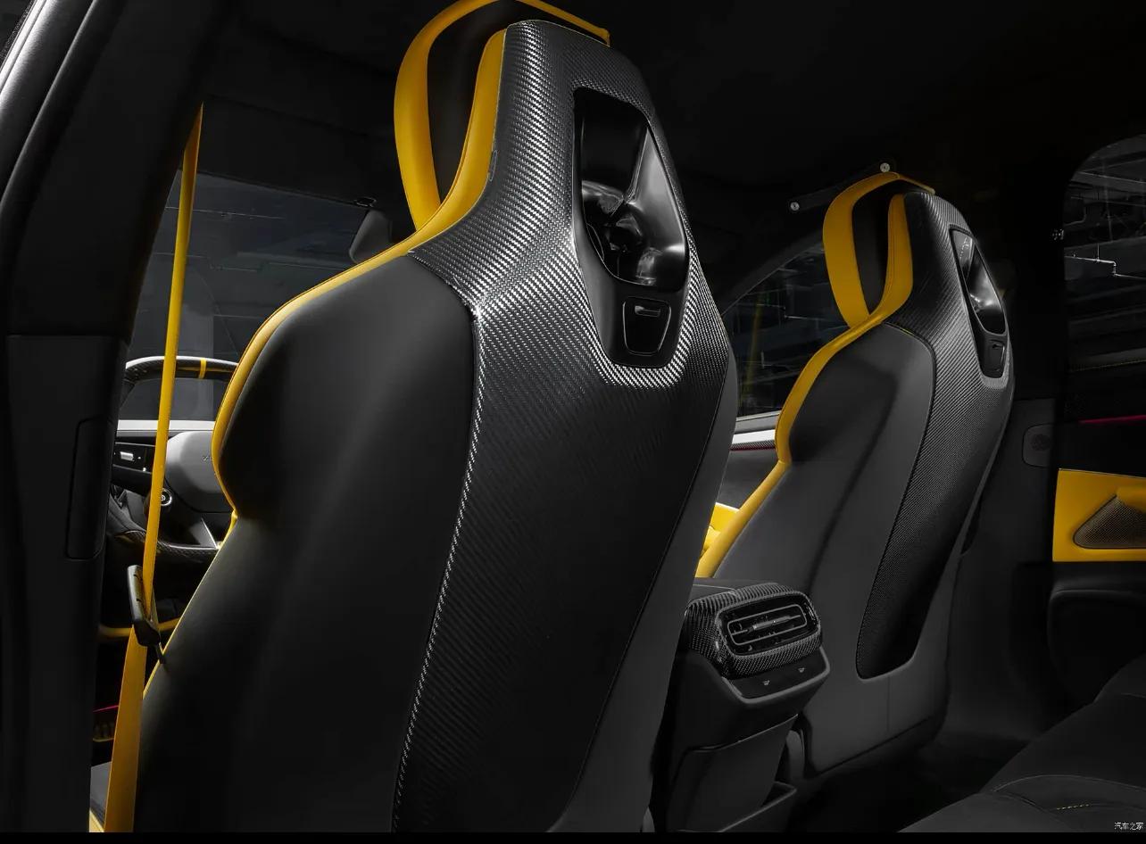 车内布局围绕驾驶体验打造,没有堆砌多余的豪华软装与冗余装饰。座椅采用强包裹的运动化设计,能够在激烈行驶状态下,稳固贴合驾乘人员身体。车内做了轻量化精简处理,去掉非必要的舒适化配置,整体座舱氛围简洁利落,核心聚焦驾驶本身。