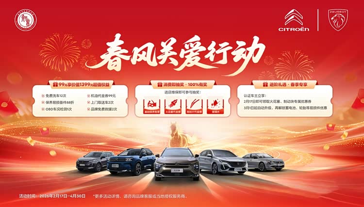 产品赢得市场,服务则守住人心。神龙汽车持续深化“五心守护行动”,将关怀贯穿整个冬春。春节前,全国服务网点累计提供超13万台次车辆健康检查,赠送防冻液近17万份,完成空调清洗近4万次。“发动机终身质保”政策覆盖650万法系车主,展现品牌对产品品质的自信与对用户的担当。