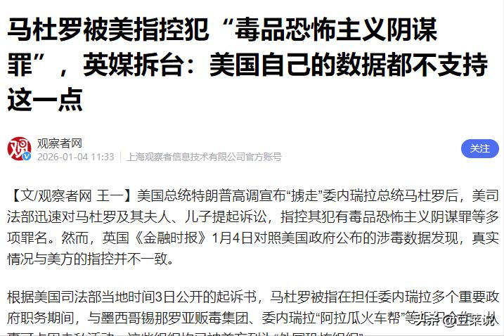 美军给出的理由,是指控马杜罗涉嫌毒品恐怖主义阴谋罪,但明眼人都能看出来,这就是美国的霸权操作。
