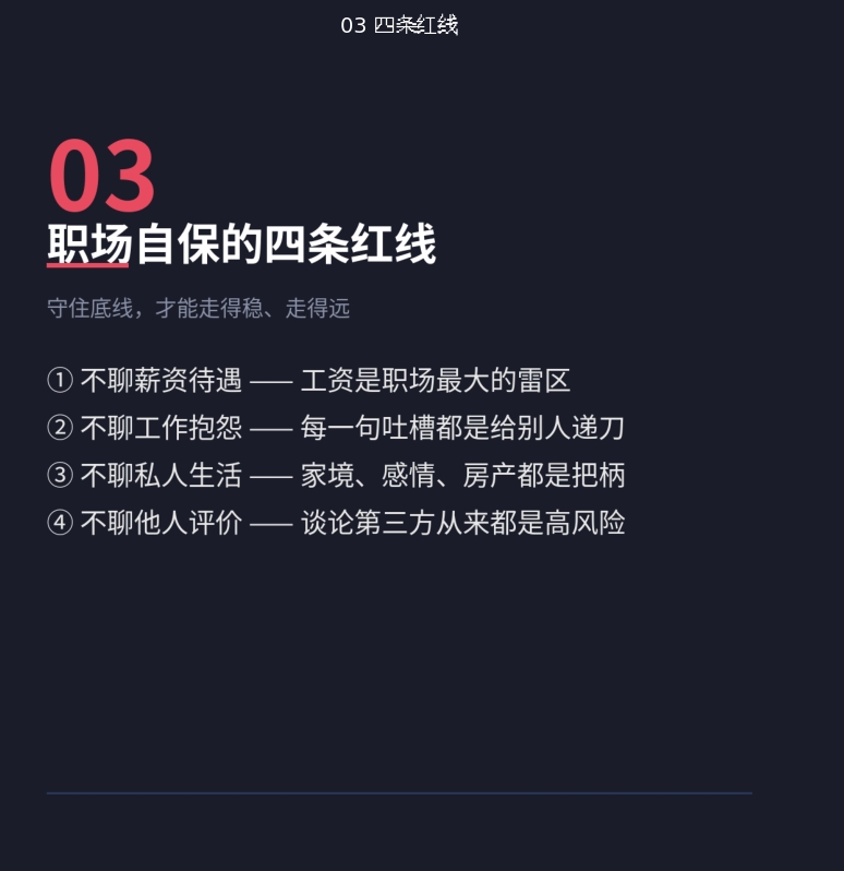 职场自保的四条红线想要在这个环境里走得稳、走得远,有些话题最好永远烂在肚子里: