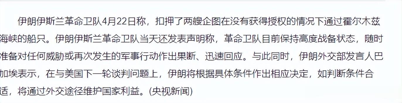 伊朗已经用“蚊子舰队”扣押了两艘未获授权、企图通过霍尔木兹海峡的船只,用实际行动证明了自己的实力。