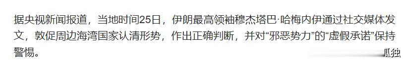 值得一提的是,穆杰塔巴在听从中国劝告后,还通过社交媒体发文。