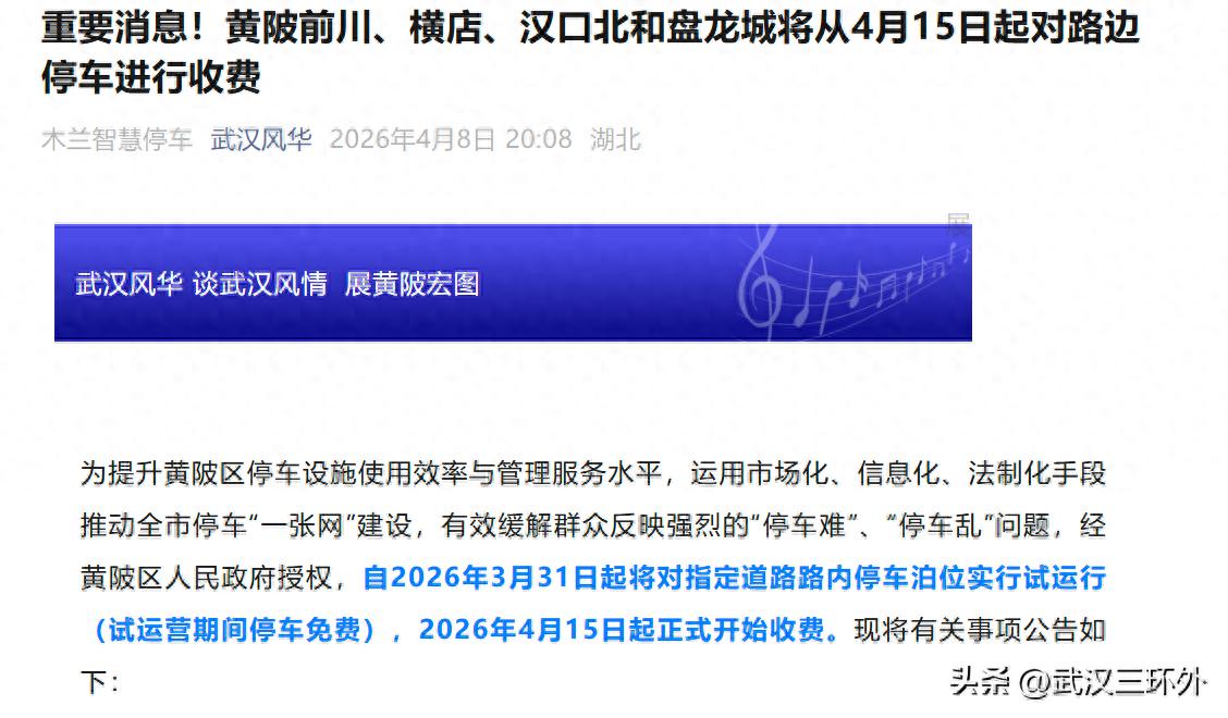 (注:本文提及的收费标准以官方最新公告为准,如有疑问可咨询武汉木兰文旅投智慧停车管理有限公司或黄陂区人民政府。)