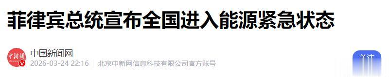 中国新闻网:菲律宾总统宣布全国进入能源紧急状态 2026-03-24