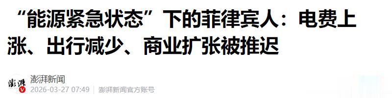 澎湃新闻:“能源紧急状态”下的菲律宾人:电费上涨、出行减少、商业扩张被推迟 2026-03-27